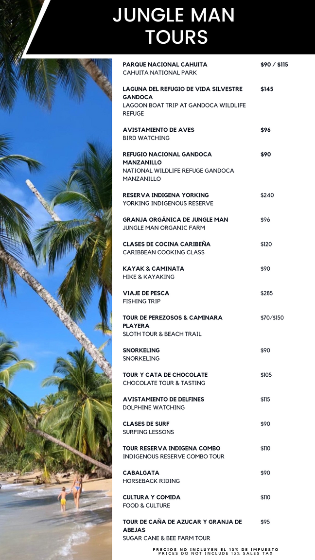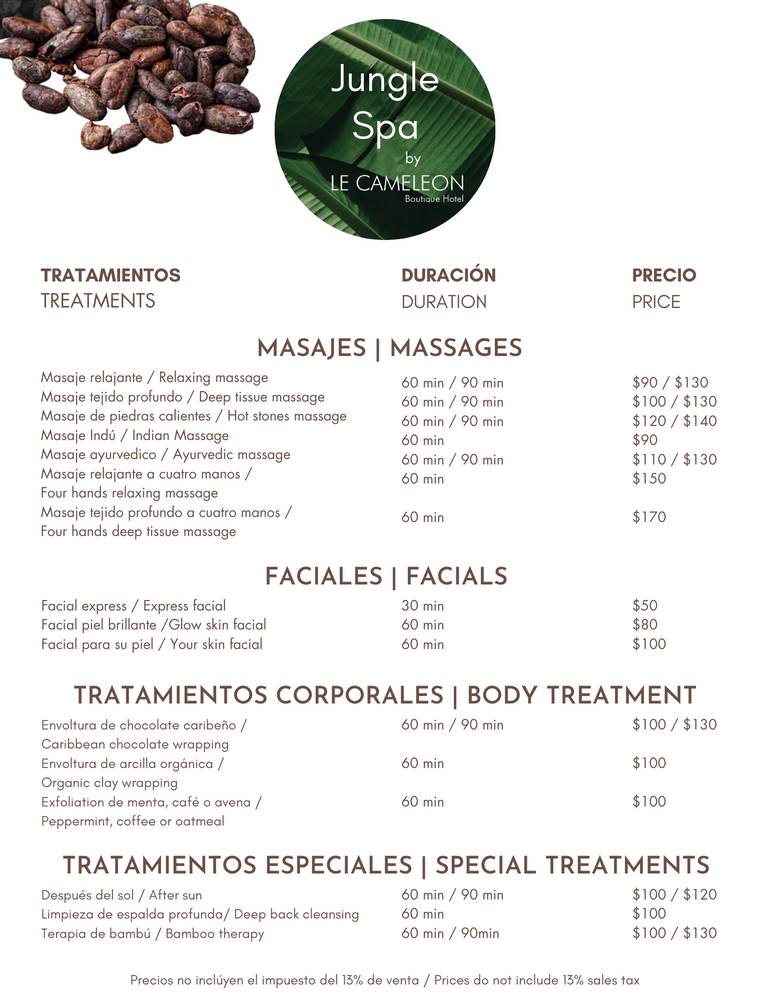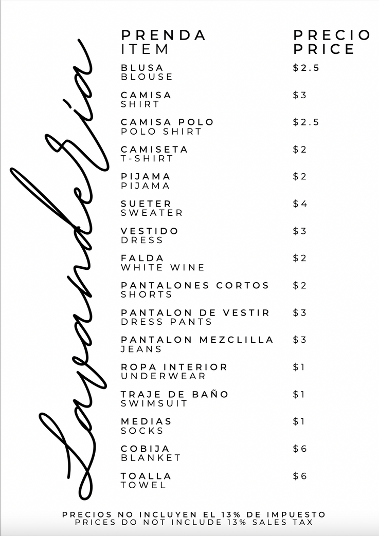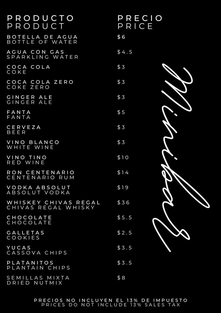 Precios en dolares excluyendo impuesto de ventas y cargo por servicio / Prices are in dollars excluding sales tax and service charge